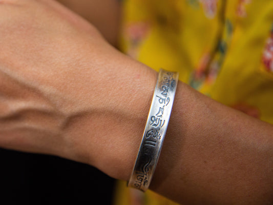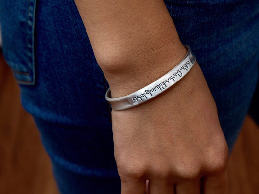 Sterling silver cuff bracelet, engraved bangle ,Tibetan mantra bracelet, meditation bracelet, his and hers bracelet, Buddhist jewelry
