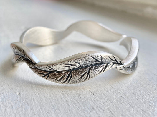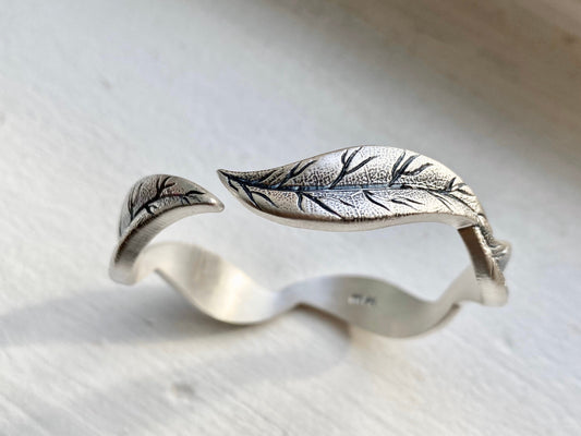 Sterling Silver Cuff Bracelet for women, Leaf silver bracelet, nature bracelet, leaf bangle bracelet, Anniversary jewelry gift for her