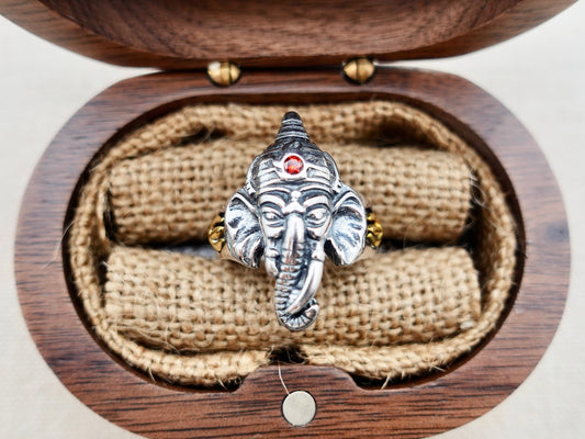 Sterling Silver Ganesha Ring, Hindu Elephant Face Ring, Adjustable ring, Ganpati Ring, Lord Ganesha Silver Ring