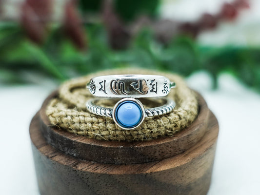 Stacking Mantra Turquoise Ring, Stackable Pinky Ring, Sterling Silver Affirmation Ring, Adjustable Meditation Yoga Accessory