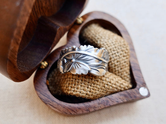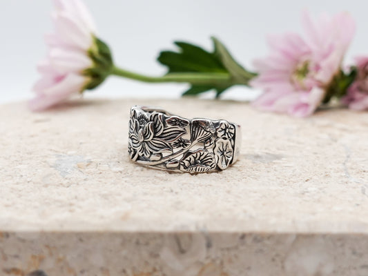 Lotus Ring, Sterling Silver Flower Ring, Meditation Ring, Protection Ring, Adjustable Ring Wide Band, Lotus Jewelry Gift for Her