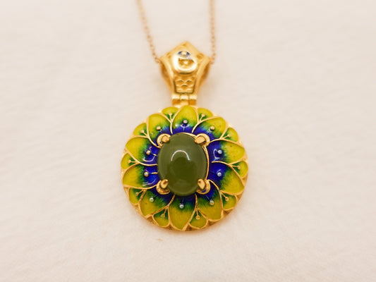 One of A Kind- Sterling Silver Gold Plated Blessing Pendant with Rare Jade, Natural Jade Necklace, Spring Necklace Mother's day gift