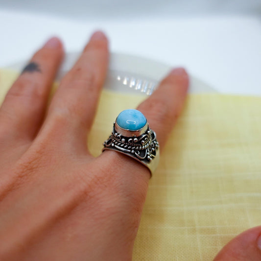 One of A Kind Sterling Silver Natural Blue Larimar Ring, Ocean Lover Ring, Adjust Ring, Caribbean Gemstone Ring, Unique Gift for Her