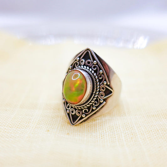 One of A Kind Sterling Silver Fire Opal Ring, Unique Fire Opal Jewelry, October Birthstone Ring, Gemstone Ring Gift for Her