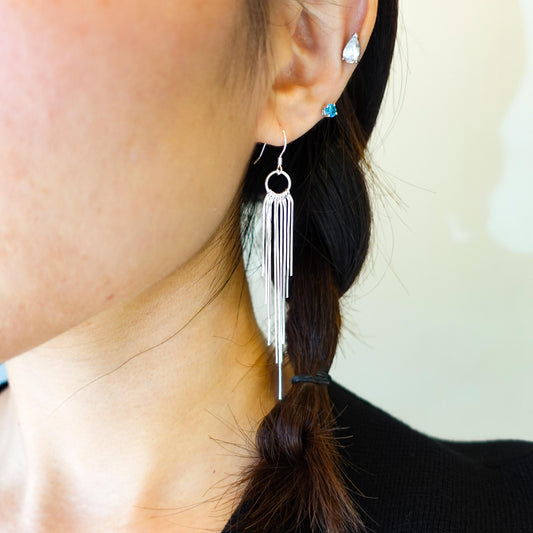 Silver Bali Earrings, Bohemian Earrings, Tribal Earrings, Dangle Earrings, Fringe Earrings, Ethnic Jewelry