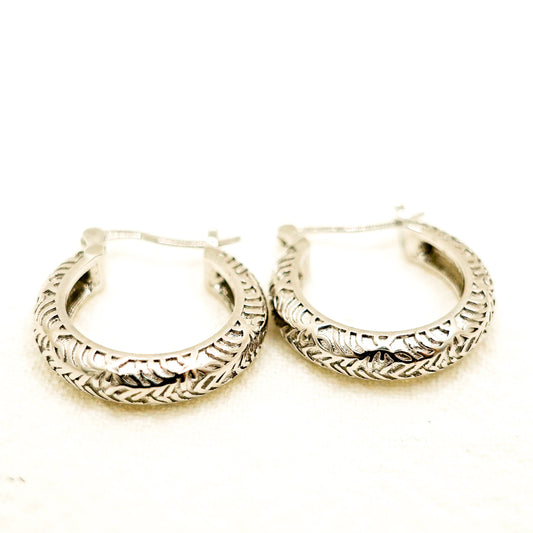 Sterling Silver Engraved Hoop Earrings, Filigree Earrings Everyday Earrings, Birthday Gift Jewelry Gift for Mom Girlfriend Sisters Her