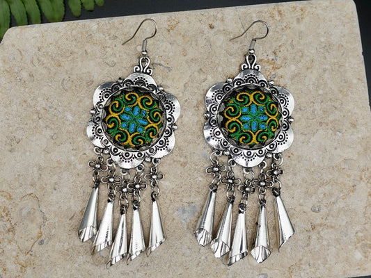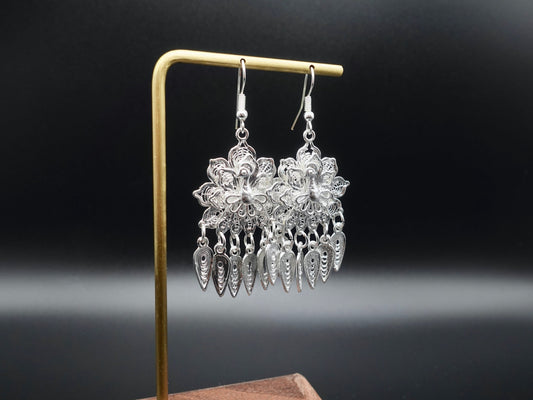Silver Mandala Earrings, Chandelier Earrings, Boho Chic Earrings, Dangle Earrings, Fringe Earrings, Ethnic Jewelry