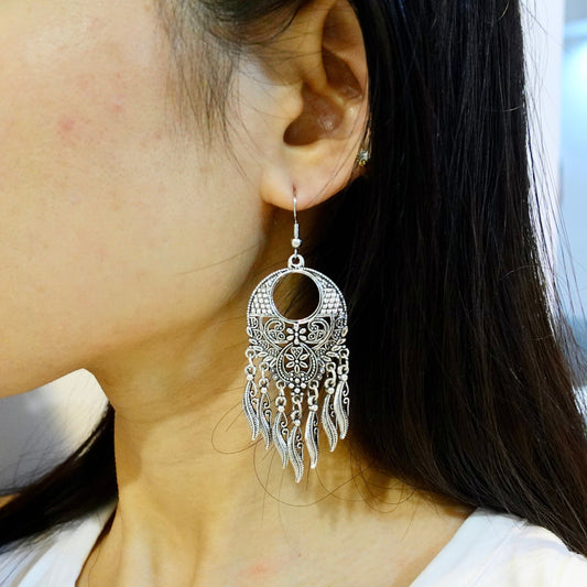 Silver Bali Earrings, Bohemian Earrings, Tribal Earrings, Dangle Earrings, Fringe Earrings, Ethnic Jewelry