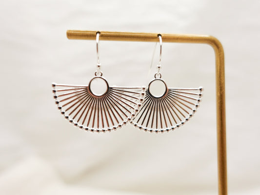 Modern Silver Fan Earrings, Sterling Silver Fan Earrings, Trendy Silver Fan Earrings,Unique Jewelry gift with Fan Motif