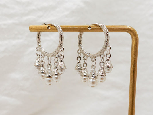 Pearl Hoop Earrings, Sterling Silver Dangle Tassel Freshwater Pearl Earrings, Elegant Pearl jewelry Gift for Her