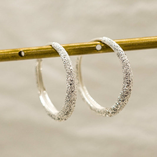 Sterling Silver Sparkle Hoop Earrings, Star-dust Minimalist Hoop Earrings, Crescent Hoop Earrings, Modern Earrings Valentine Gift