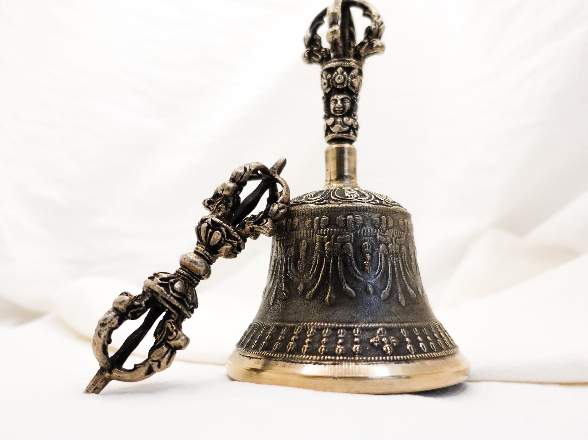 The Vajra symbolizes the indestructible nature of enlightenment and is used to represent the masculine principle of skillful means and compassion. The Bell, representing the feminine principle of wisdom, emits a soothing sound that clears the mind and creates a serene atmosphere for meditation.