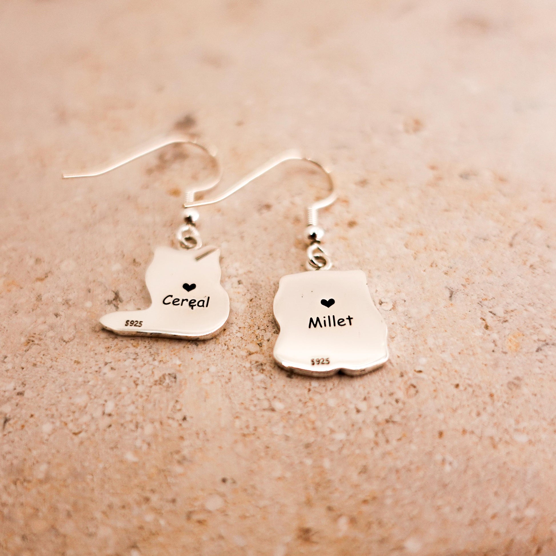 Personalized Sterling Silver Cat & Dog Earrings – Custom Handcrafted Pet Lover Jewelry with Name Engraving