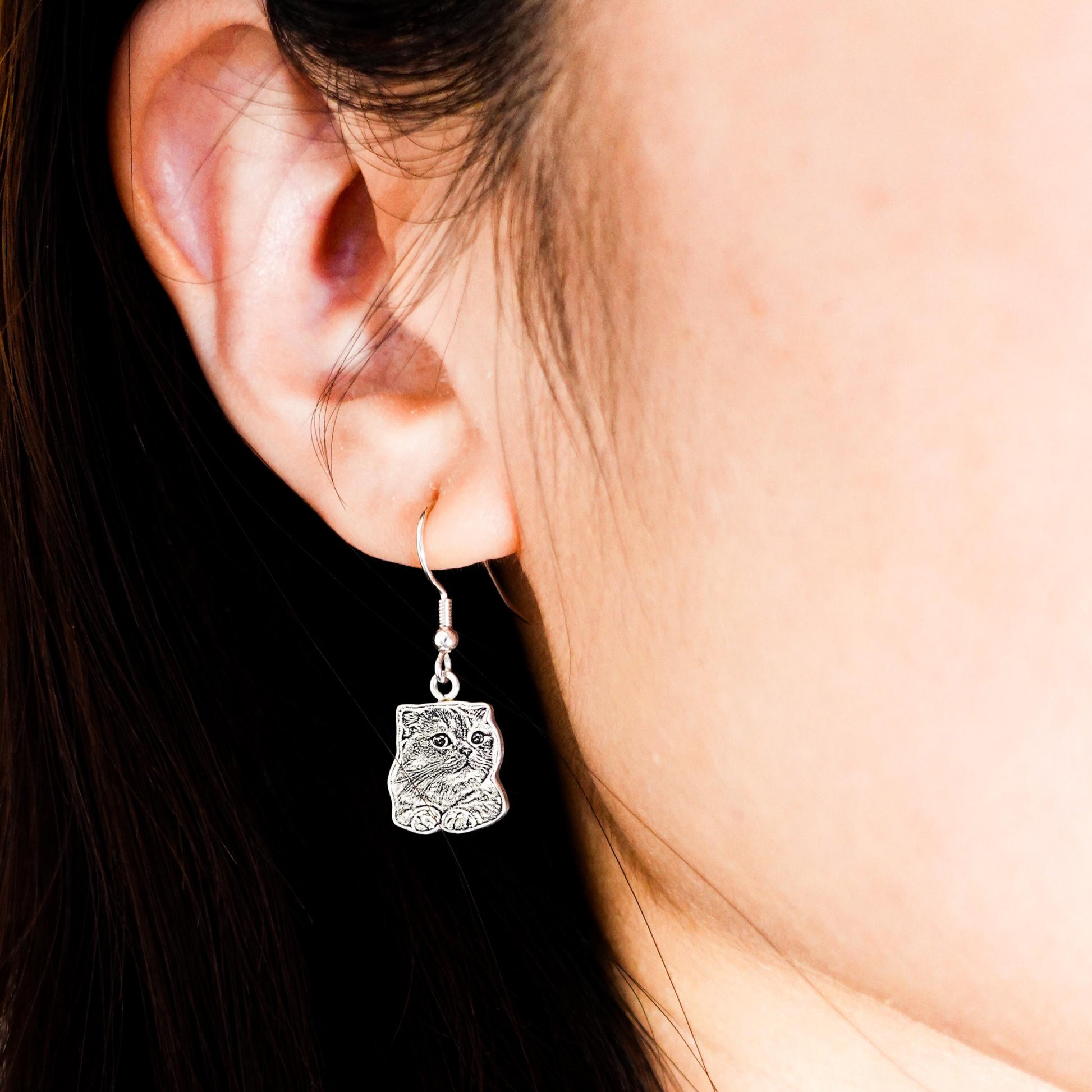 Sterling Silver Custom Pet Portrait Earrings, Personalized Pet Photo Earrings, Cat Dog Pet Lover Jewelry, Birthday Gift for Mom Wedding Gift