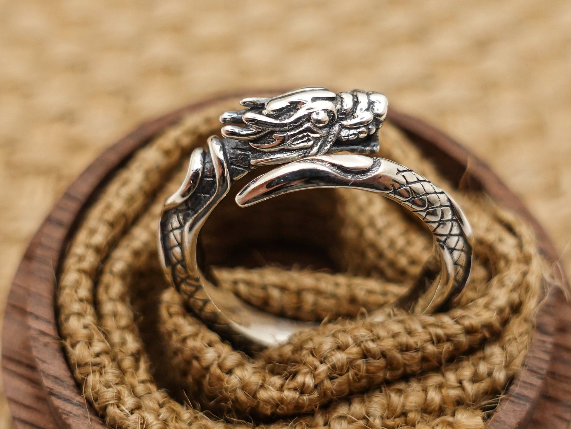 Sterling Silver Dragon Ring, Men Women Dragon Ring, Adjust Ring, Thumb Ring, Fantasy Ring for Him Her