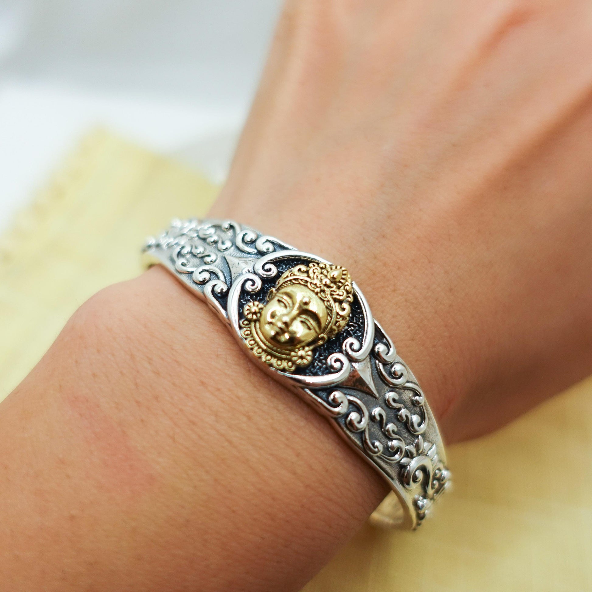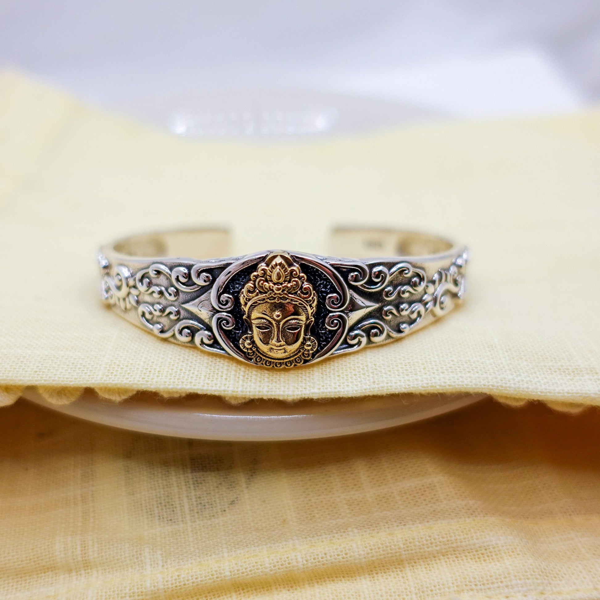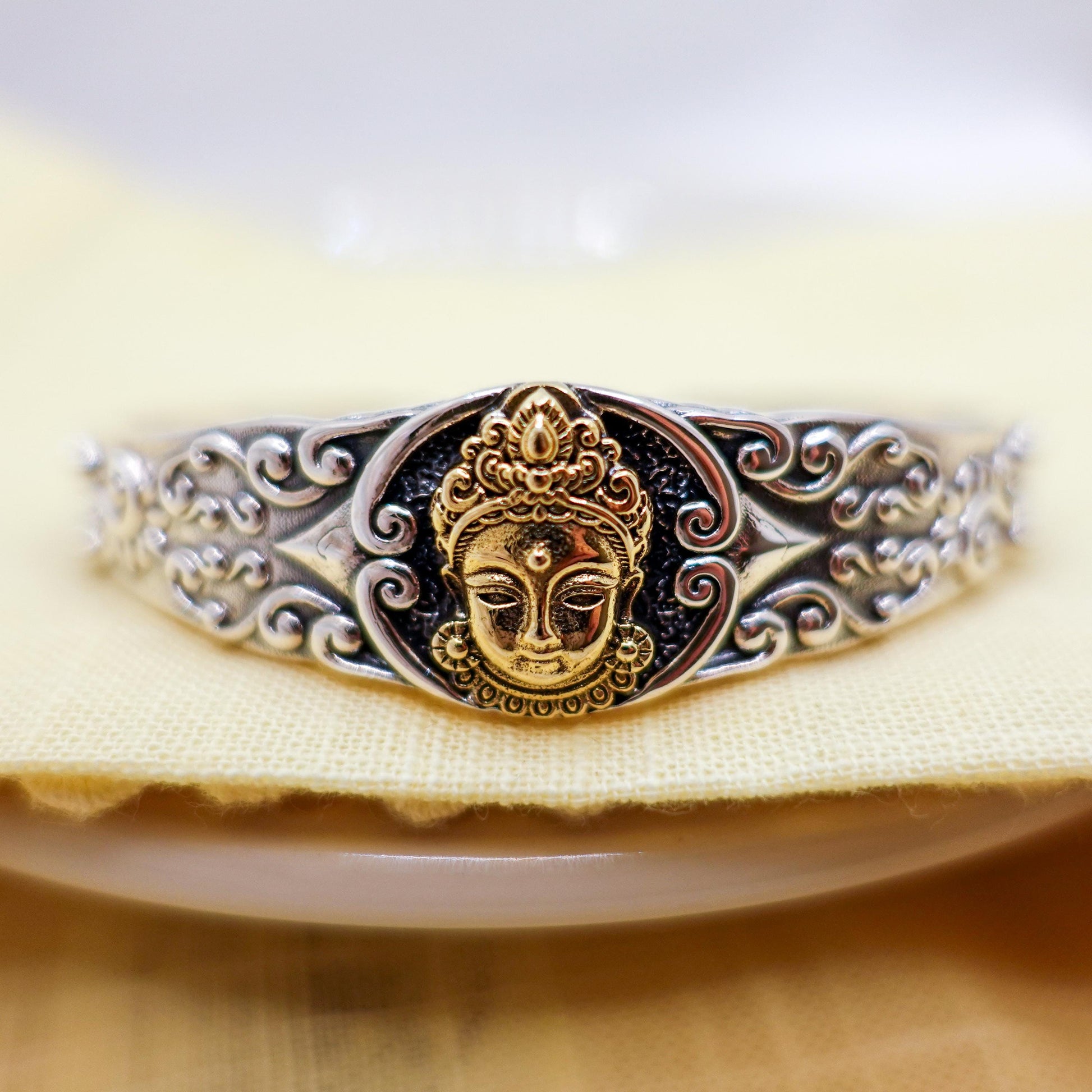 Sterling Silver Tara Bracelet, Protection Cuff Bracelet, Wealth Wisdom Love Bracelet, Spiritual Healing Energy Mindfulness Gift for Her